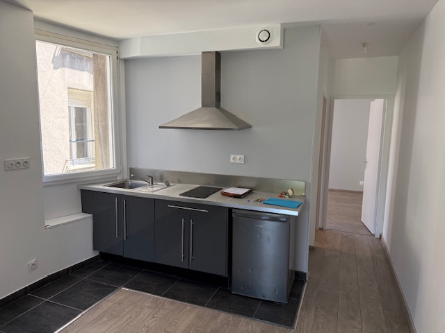 Brest St Michel: A louer spacieux T2 rénové, situé à proximité de la gare, au 4ème et dernier étage, comprenant une entrée, grande pièce de vie ouverte sur cuisine aménagée et équipée, chambre, salle d'eau avec douche à l'italienne, WC. Le chauffage, l'eau froide et chaude sont incluent dans les charges.