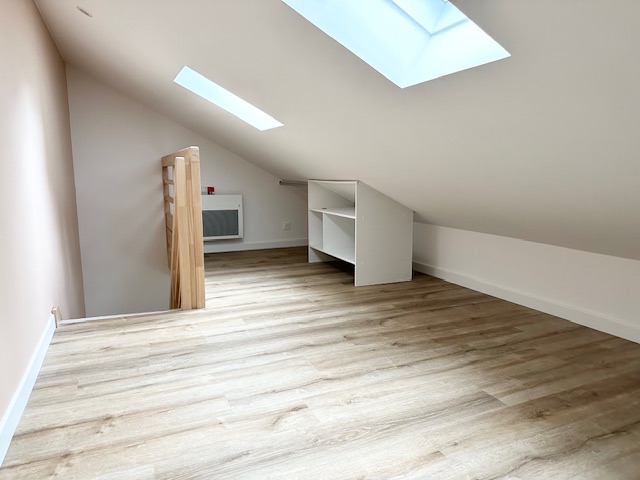 A louer Brest Kérichen: Très beau T1 bis neuf en duplex, 1er occupation, cet appartement situé dans un petit immeuble au calme et isolé sans voisin direct, se compose d'une pièce de vie avec cuisine aménagée et équipée (plaque de cuisson vitrocéramique et frigo), une salle d'eau avec douche et WC , une chambre mansardée à l'étage vous permet d'avoir votre coin nuit indépendant de la pièce à vivre.