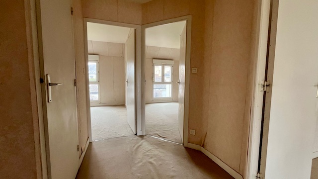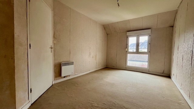 À l’étage, vous trouverez trois grandes chambres, une salle de bains et un espace prévu pour un WC ou un placard.